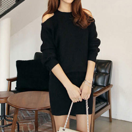 Solid color style,designed with long sleeve,round neck,off-shoulder and a clean