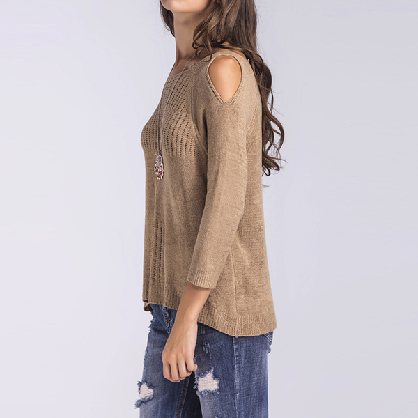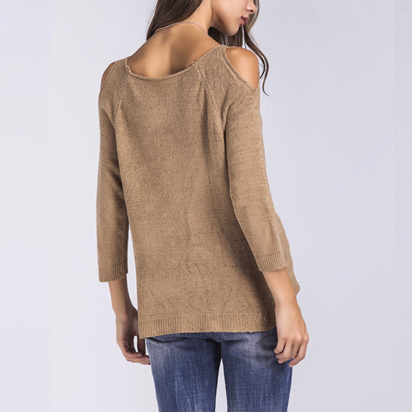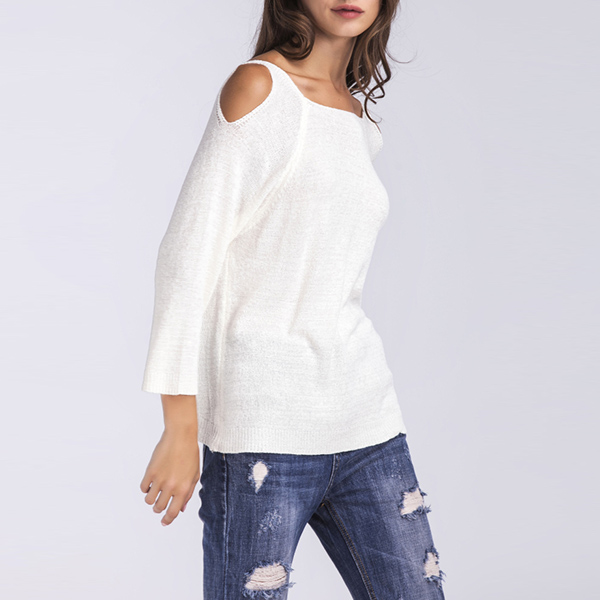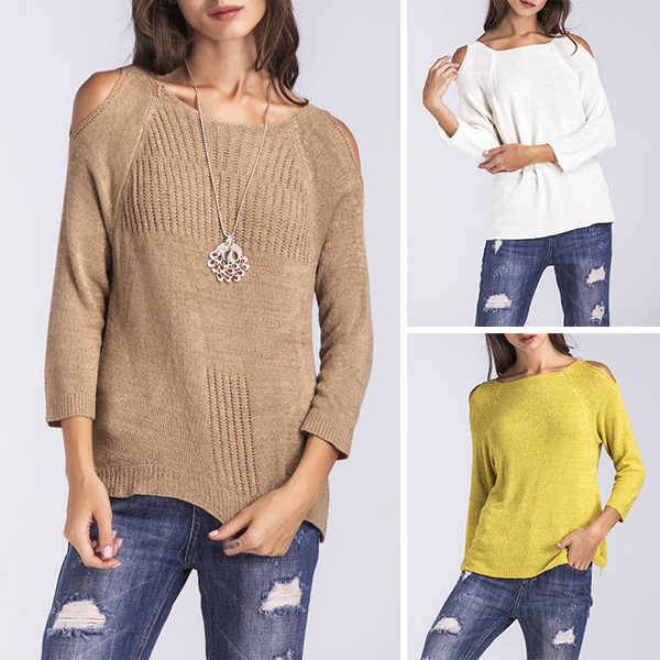 Wanna try a different style sweater? Then we suggest you this one. It boasts a solid color,the off-shoulder design will