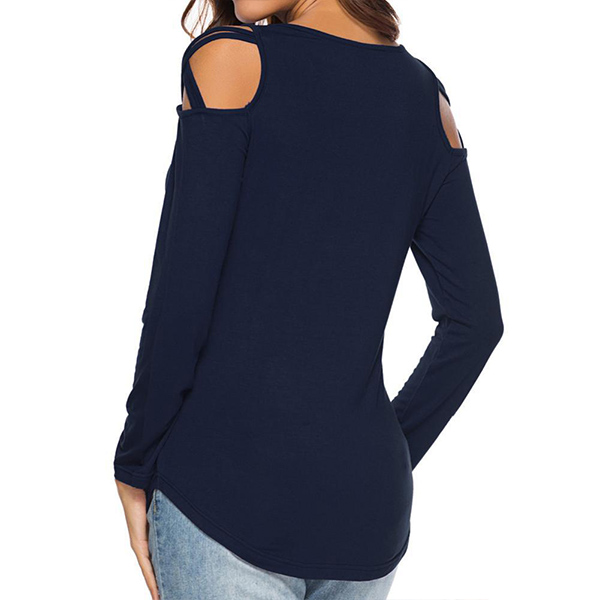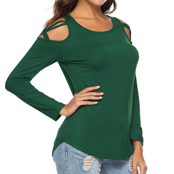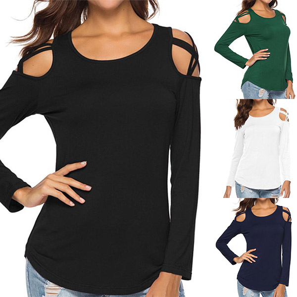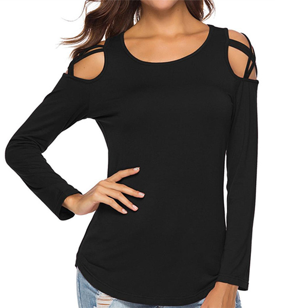 off-shoulder design,which enhances the charm of this t-shirt. Simply matching with your jeans