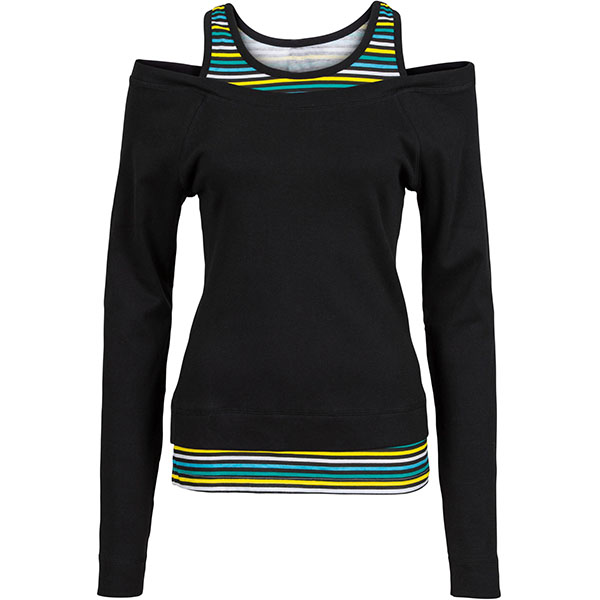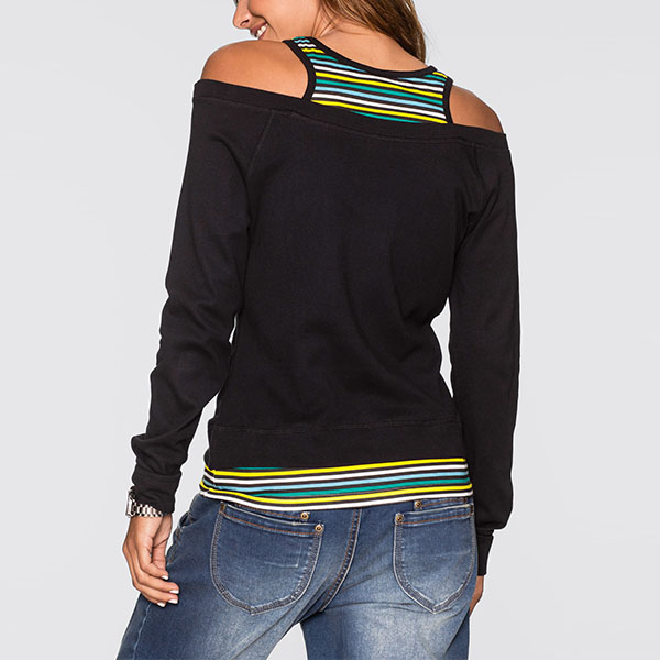 At your first sight,you may think it is a two-piece set,actually it is only one piece. Striped spliced design enriches its design