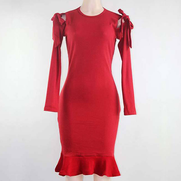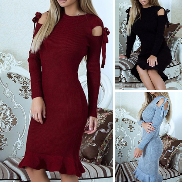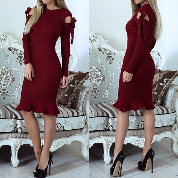 the off-shoulder and ruffle hem design will further boost your feminine appeal,while the fit silhouette design