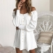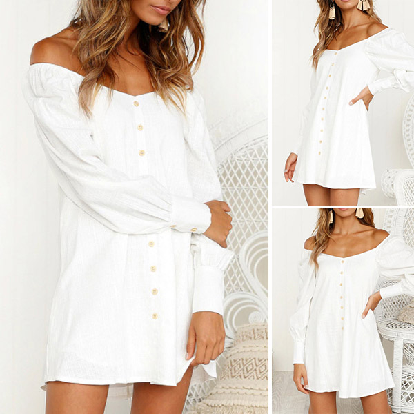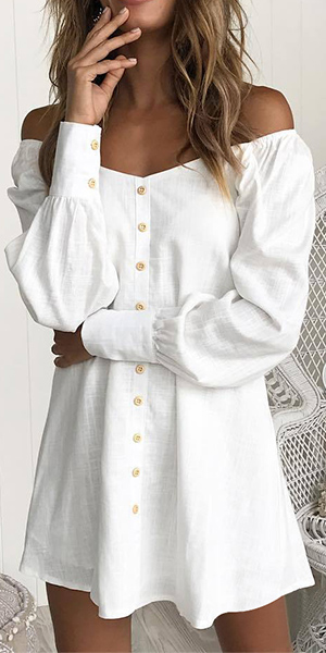 Sexy Off-shoulder Long Sleeve Single-breasted Solid Color Dress