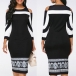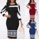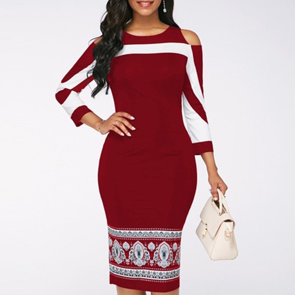 Sexy Off-shoulder Long Sleeve Slim Fit Contrast Color Printed Dress