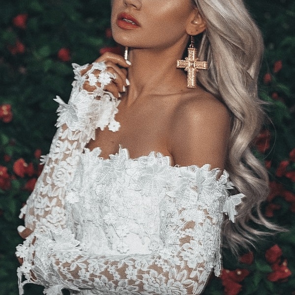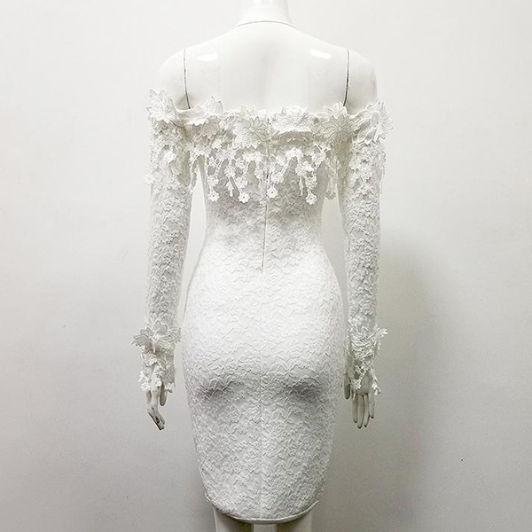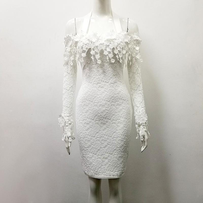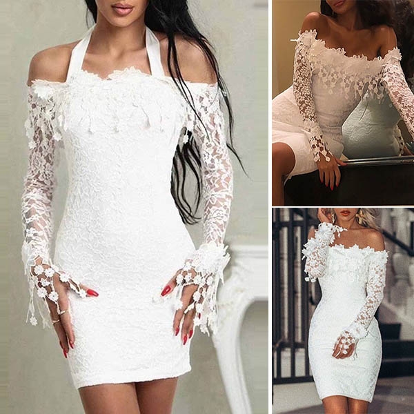 Look exceptionally stunning when you slip into this lace dress. Halter style,the off-shoulder and hollow
