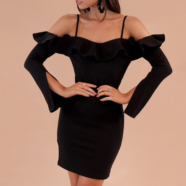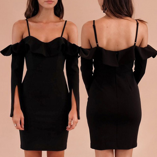 You can don this little stunner,you can easily be the focus. Sling style,the off-shoulder and ruffle design