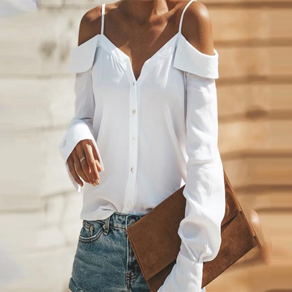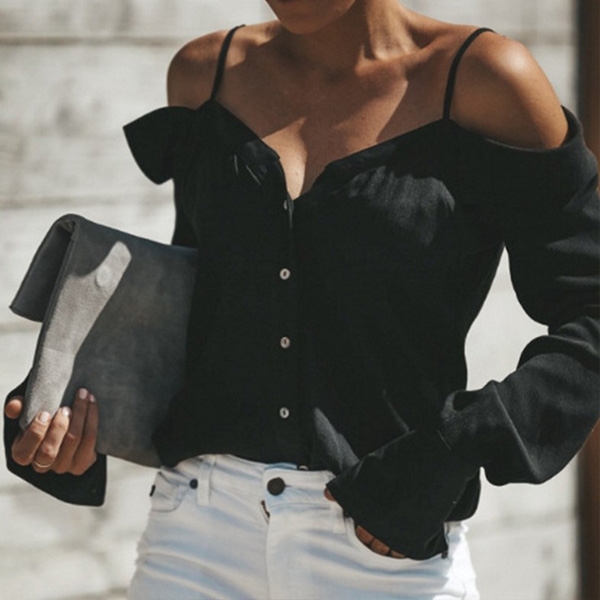 Inject a dash of sexy and feminine appeal to your wardrobe with this blouse. The sling and off-shoulder
