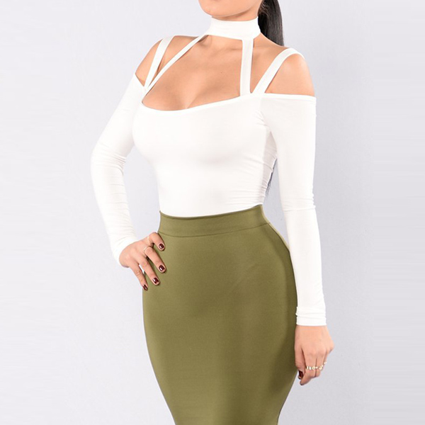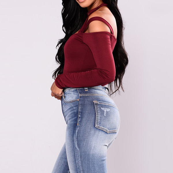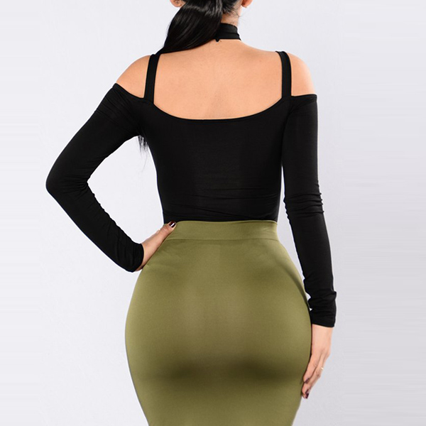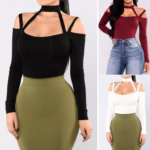 Embrace your seductive curve with this alluring bodysuit. Solid color style,the off-shoulder and hollow out