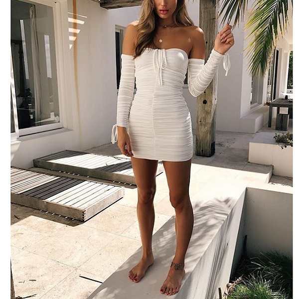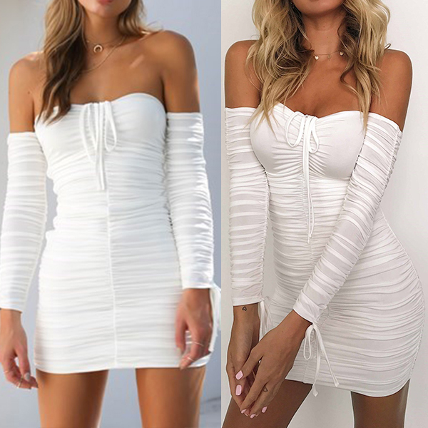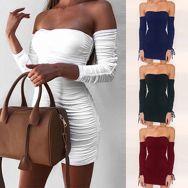 Embrace your seductive curve with this mini tight dress. Solid color style,off-shoulder design gives you the chance