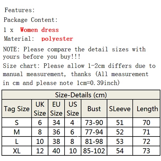 XL : Bust : 85cm - 102cm(33.46" - 40.16"); Sleeve : 54cm(21.26"); Length : 73cm(28.74");
