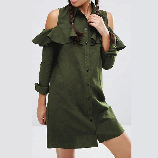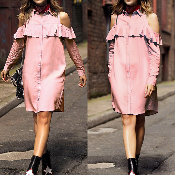 If you're in search for a dress that can easily upgrade your style, then look no further than this shirt dress! Solid color style,