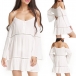 This dress comes with a classic yet stylish white tone,the off-shoulder and sling design can lend you a
