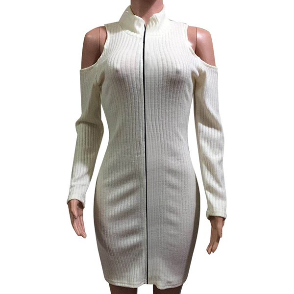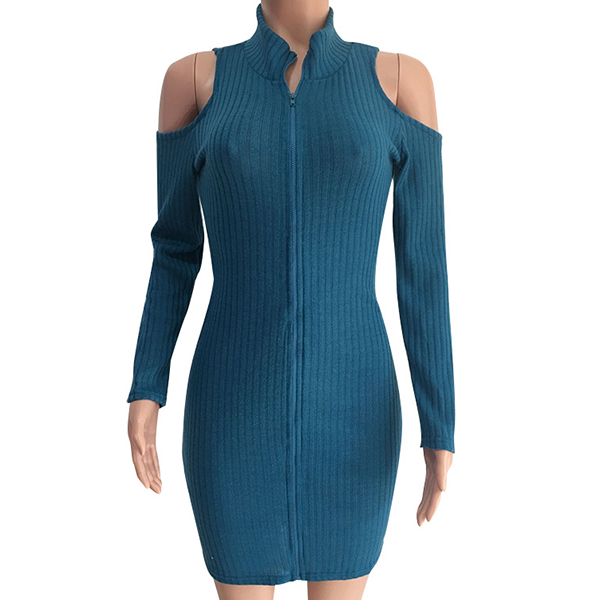 sleeve,stand collar,front zipper closure and a fit silhouette,this knit dress is a good way to express yourself!