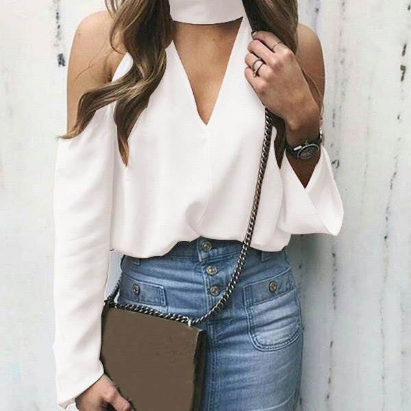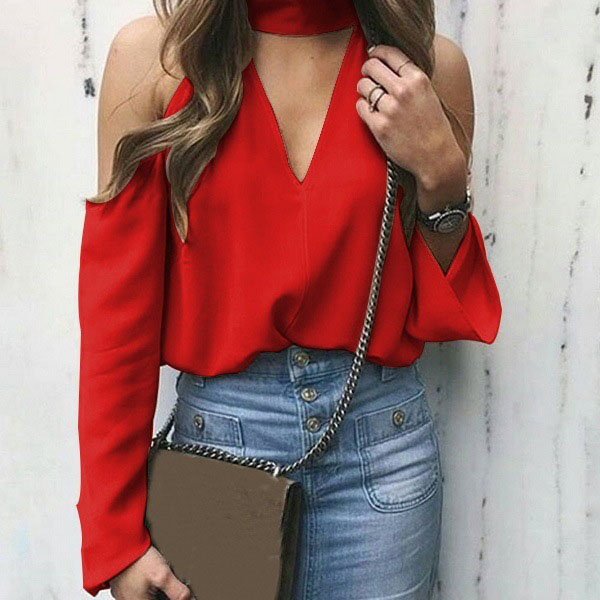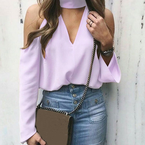 Exude your sexy and flirty appeal with this chiffon top. Comes with a solid color,the off-shoulder and v-neck