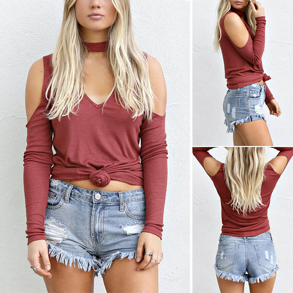 its soft and breathable fabric can give you an all-day comfort,while the off-shoulder and unique v-neck
