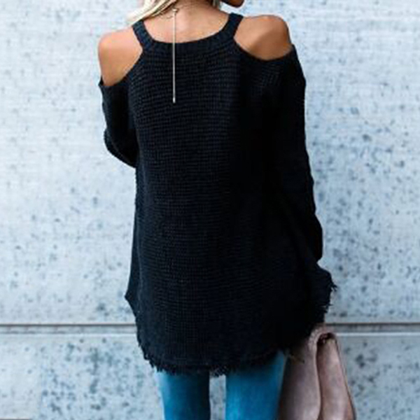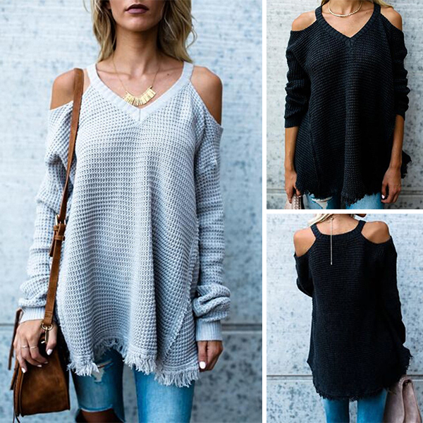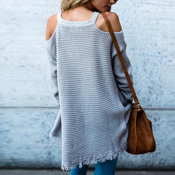 It owes to the off-shoulder and tassel hem design. You can match with a leggings for a fashionable style.