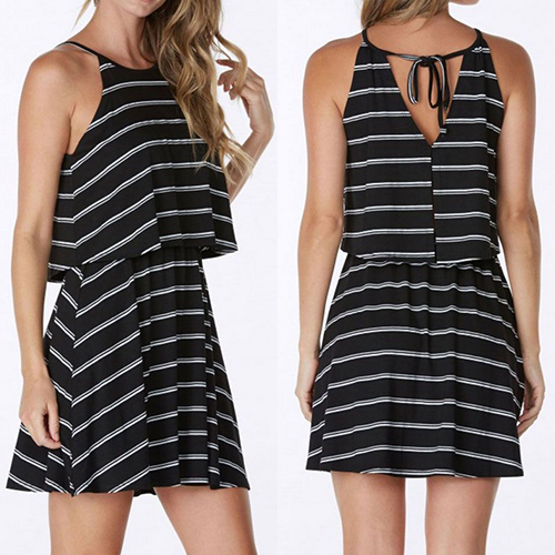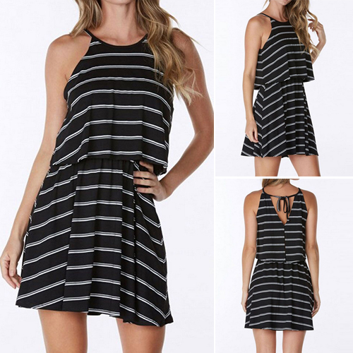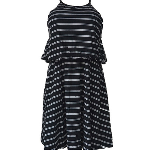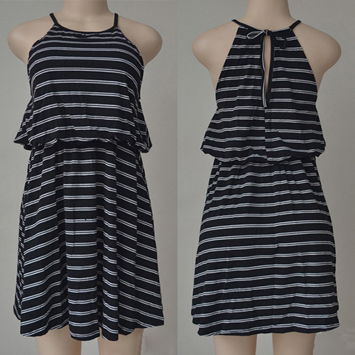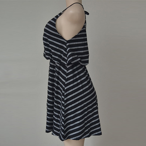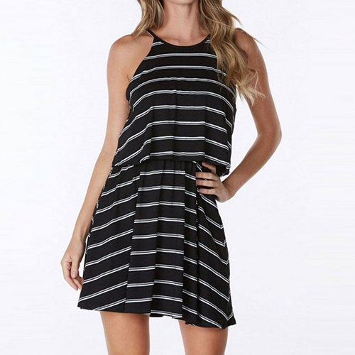 Look absolutely chic and poised in this classic striped dress. Sling style, with cozy fabric,
