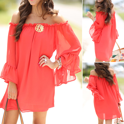 ensures you a comfortable day. Solid color style,the off-shoulder design accompanied with lotus sleeve makes this a dreamy addition to your wardrobe.