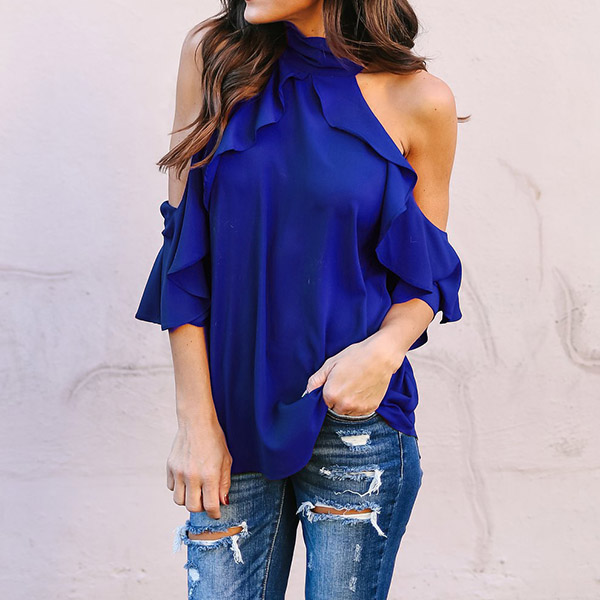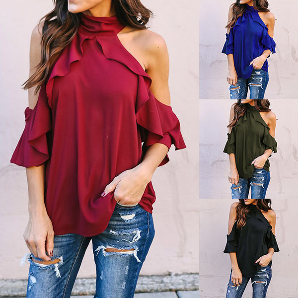 Hey,girls,you can slip into this top for a sexy and feminine style. Solid color style,the off-shoulder and