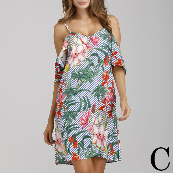 and eye-catching printed pattern,with off-shoulder,v-neck and lotus sleeve design,sexy yet sweet.