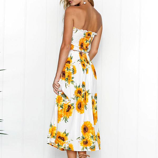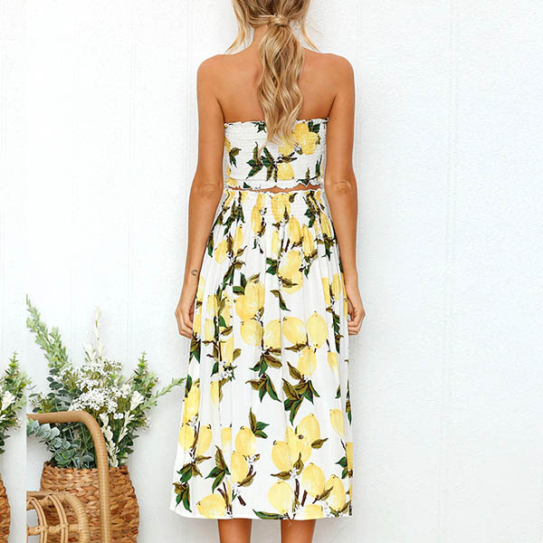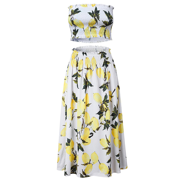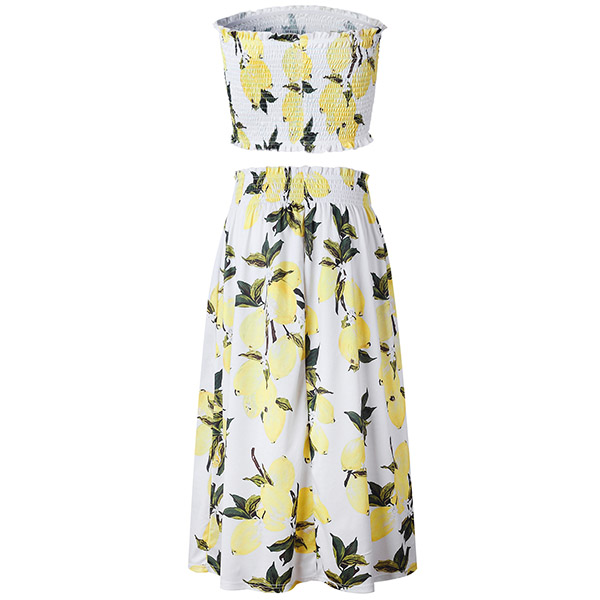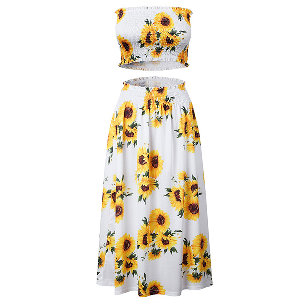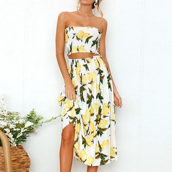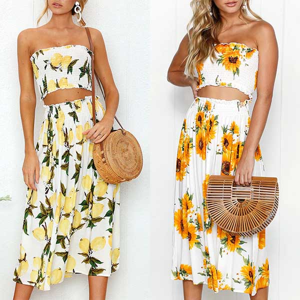 Including a bandeau top and a high waist skirt,boasts eye-catching printed pattern,