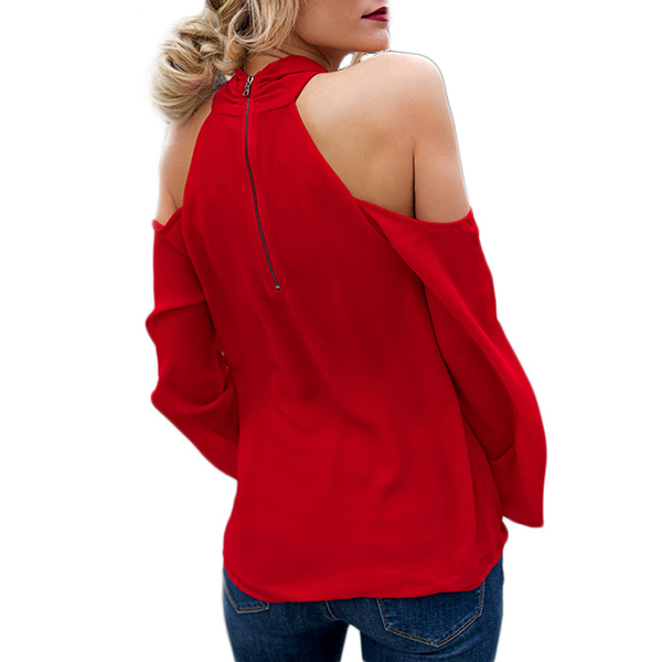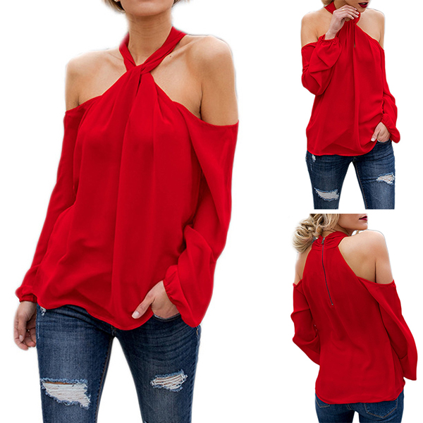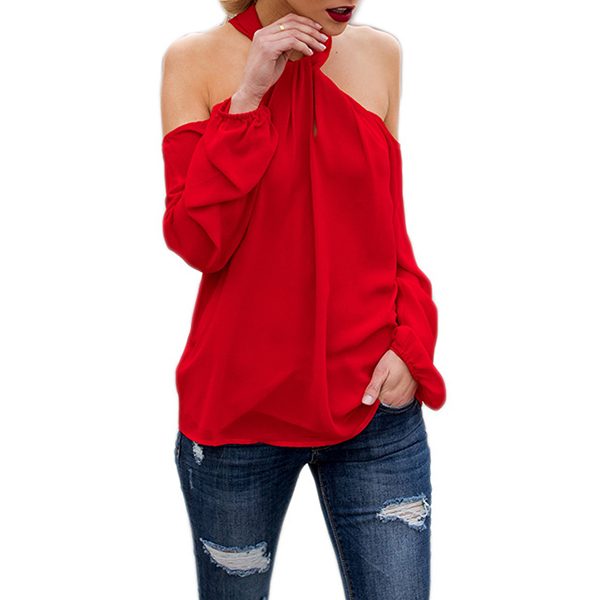 You can look so beautiful and charming when you wear this chiffon blouse. It boasts a bright red tone,the
