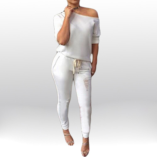 charming look. Tops with off-shoulder and ripped design at back,sexy and chic. And its soft and cozy