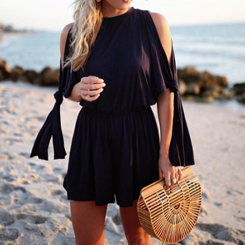 Attracted by this romper at your first glance? Then add it to your wardrobe ensemble! Solid color style,