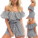 Plaid element design makes it look so popular and attractive,while the ruffle boat neck design can