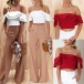 It boasts a solid color tone,the ruffle boat neck design is the highlight,which makes this piece look so attractive.