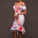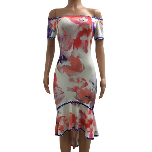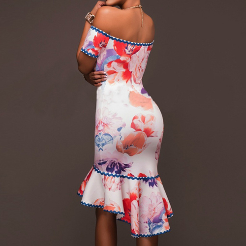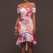 eye-catching printed pattern,its off-shoulder and ruffle hem design makes this dress more