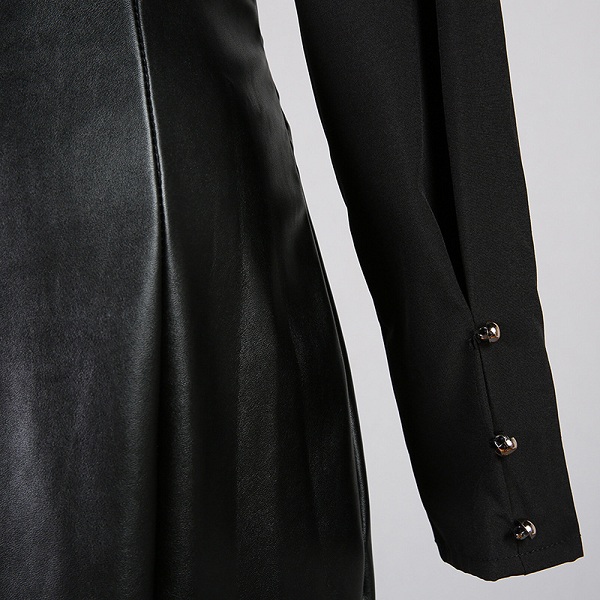 Defining your femininity is easier when you opt for this long sleeve dress! PU leather spliced design makes