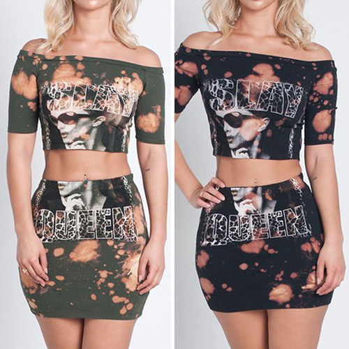 Including an off-shoulder wide neckline short sleeve crop top and a high waist bust skirt,this two-piece set can perfectly