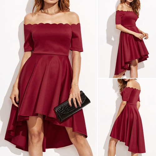 hand. Solid color style,with off-shoulder and high-low hem design for an added appeal. Paired with your sexy heels,stunning