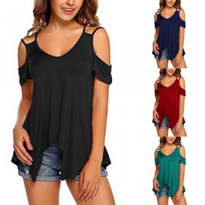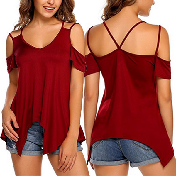 solid color,the off-shoulder and irregular hem design make this piece look more distinctive and attractive.