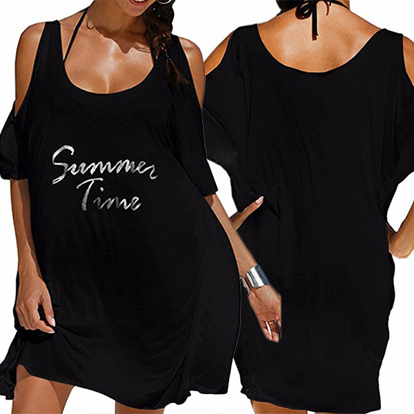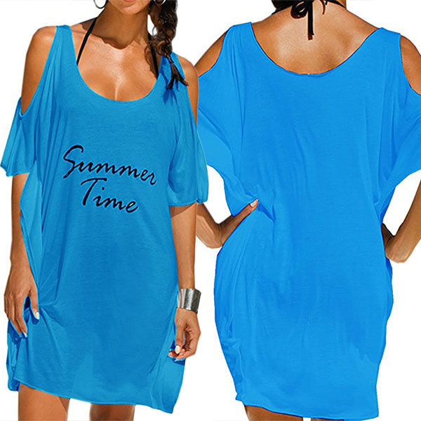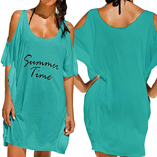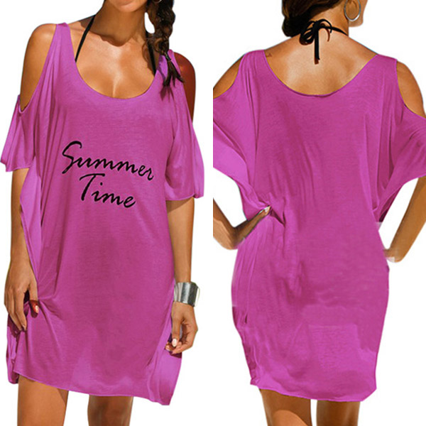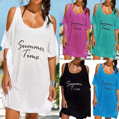 Sexy Off-shoulder Short Sleeve Letters Printed Loose Dress