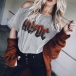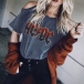 This t-shirt would be your new favourite in these summer days. The off-shoulder and letters printed