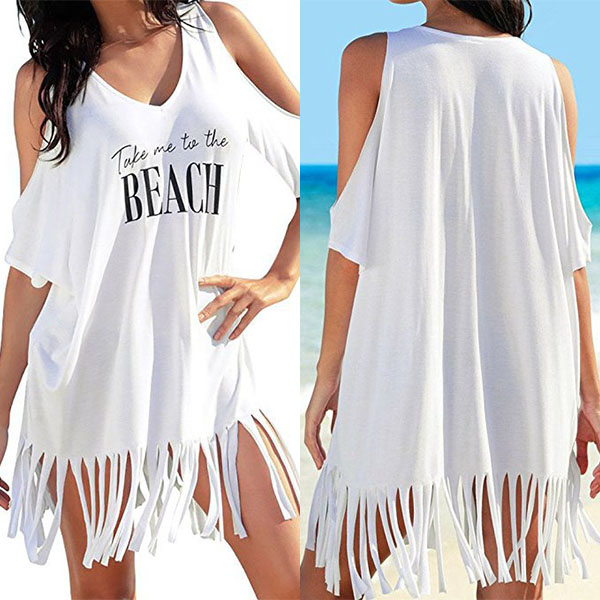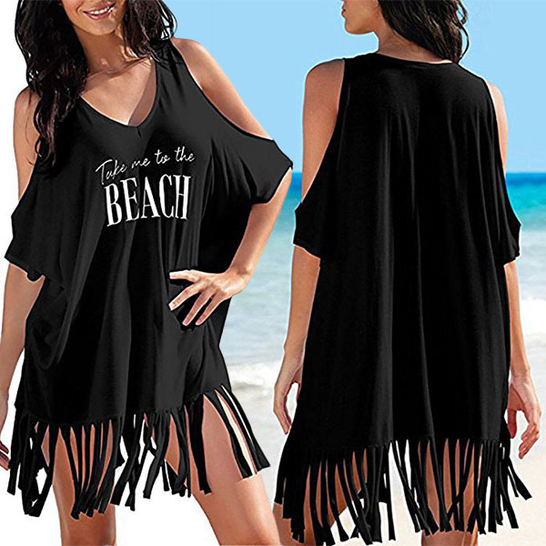 makes it look no simple,while the off-shoulder and tassel hem design will further enhance its charm.