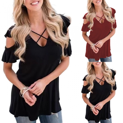 Sexy Off-shoulder Short Sleeve Low-cut Slim Fit T-shirt(It falls small)
