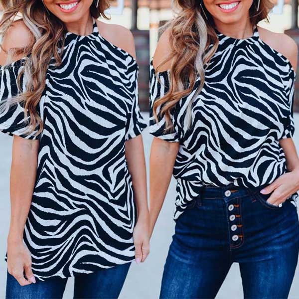 Its chic printed details make this piece look more eye-catching,while the off-shoulder design can lend