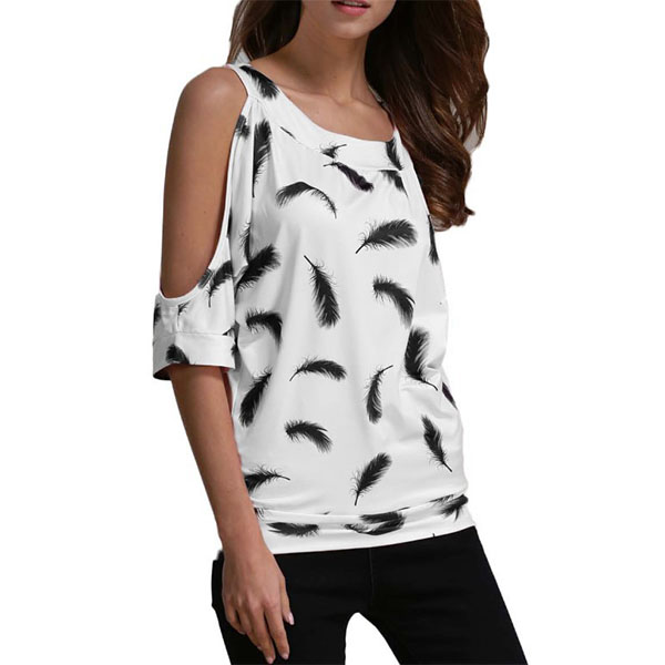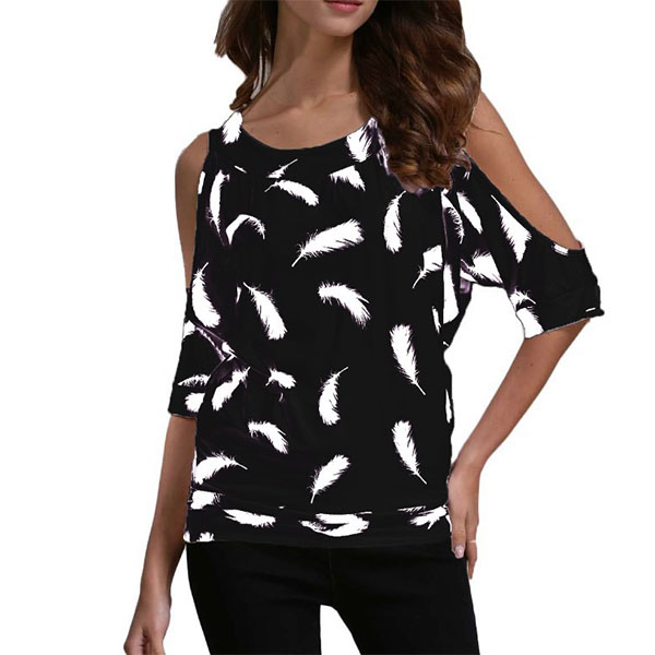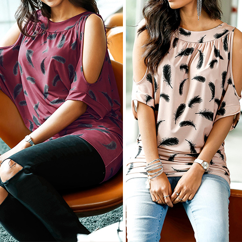 stylish,while its off-shoulder design adds a touch of sexy vibe. This t-shirt os sure to give you a comfortable day with its cozy fabric and relaxed-fit silhouette.