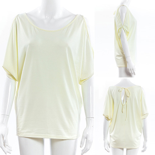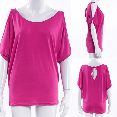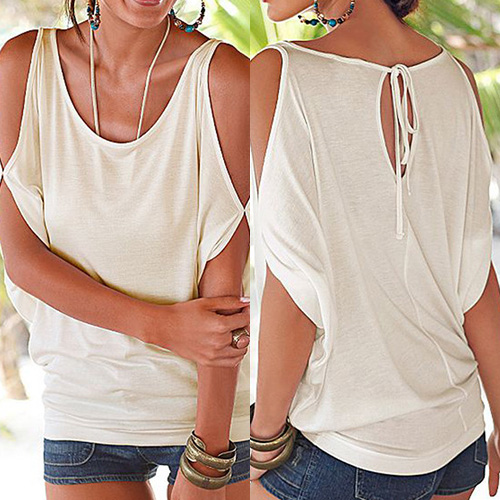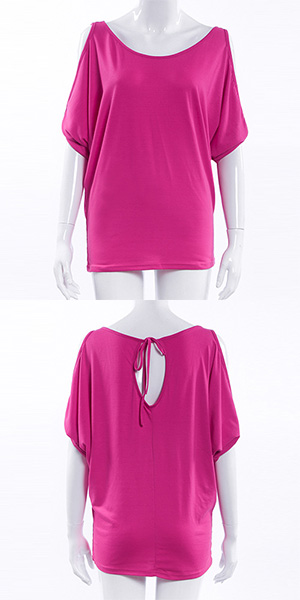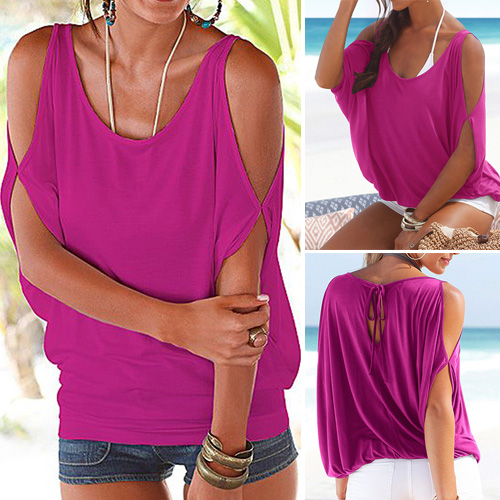 This t-shirt can give you a cozy yet stylish look. Solid color style,its off-shoulder and