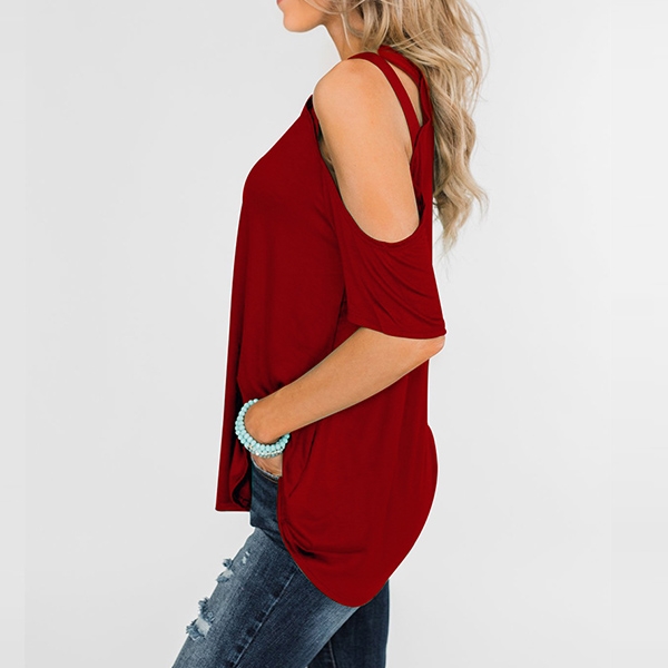 You can stay cozy yet sexy in this t-shirt. Bears a solid color,the off-shoulder design makes this