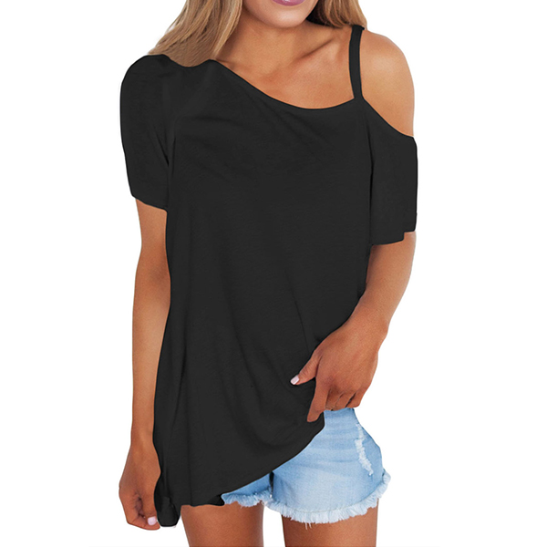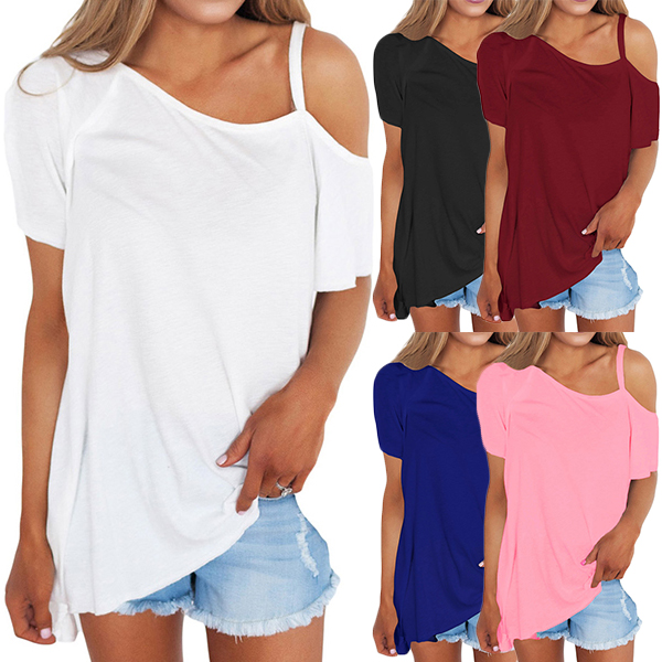 loose silhouette can keep you comfy all day,while the off-shoulder design brings a touch of sexy flavor to your look.