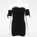 Seductive appeal can come easily when you don this dress. Off-shoulder design can showcase your
