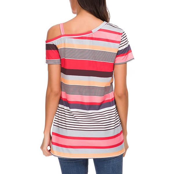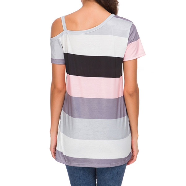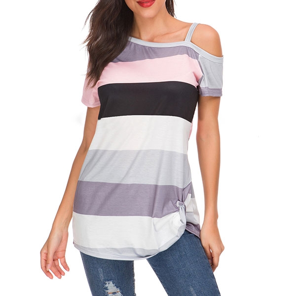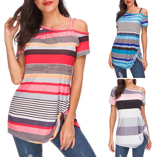When it comes to a cozy,stylish yet sexy style,you can count on this t-shirt. Striped style,the off-shoulder