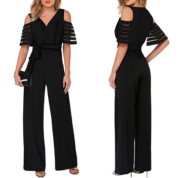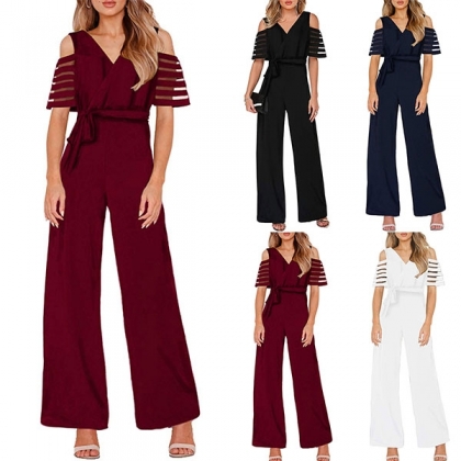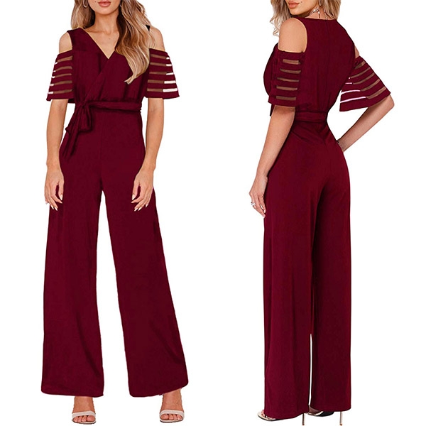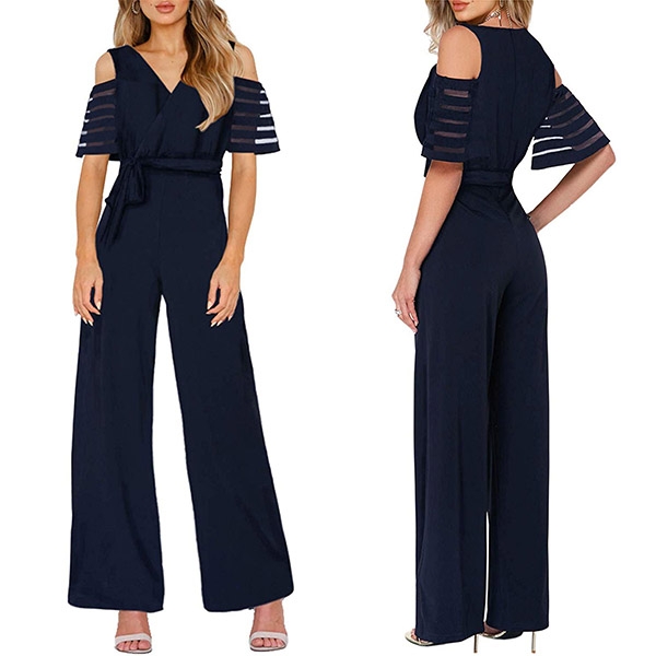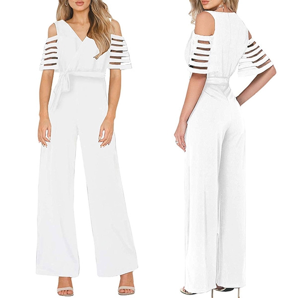 focused on this delicate jumpsuit! Its off-shoulder and v-neck design can exude your sexy and feminine side,