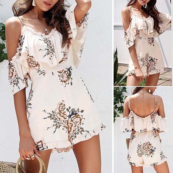 Look extra beautiful and charming with this romper from day to night. Sling style,the off-shoulder