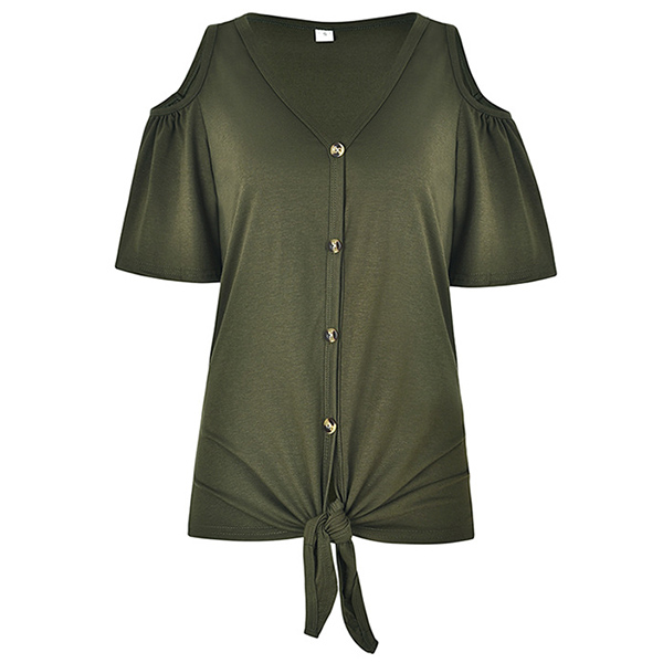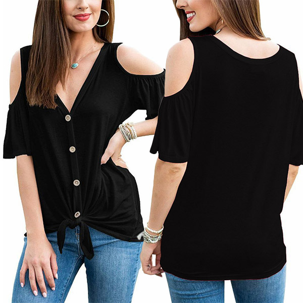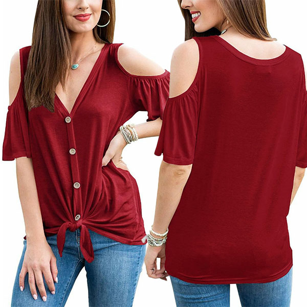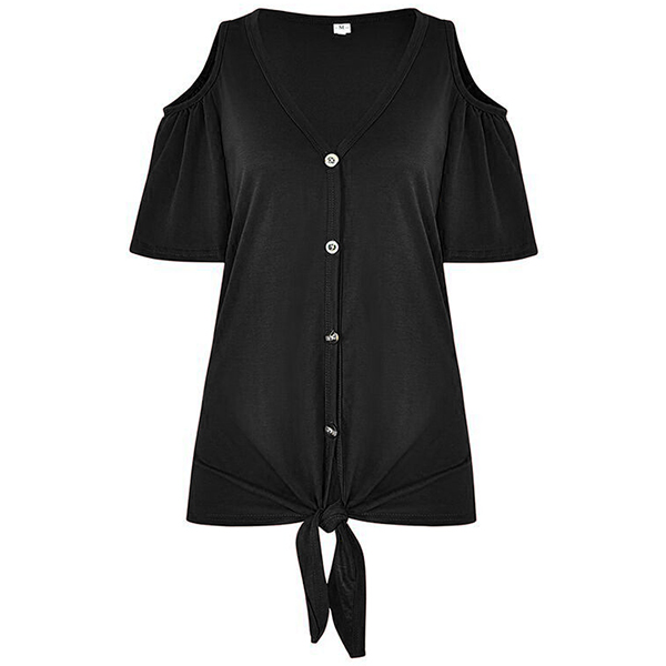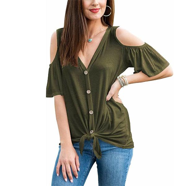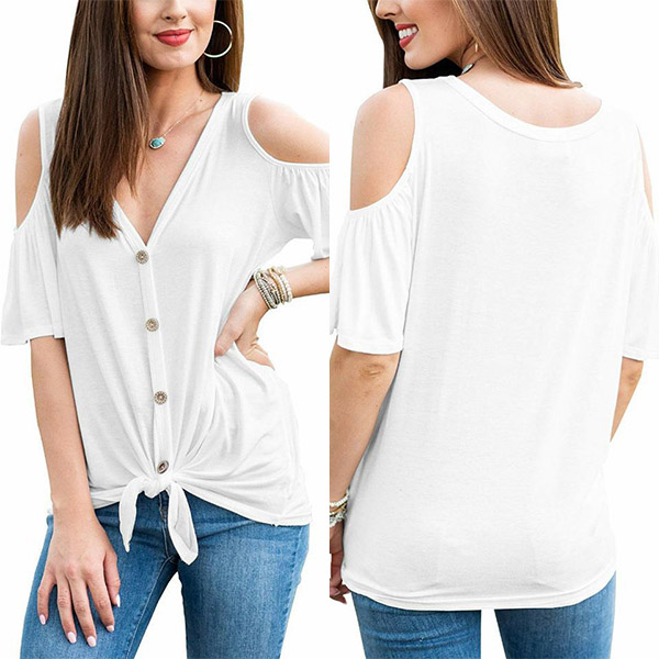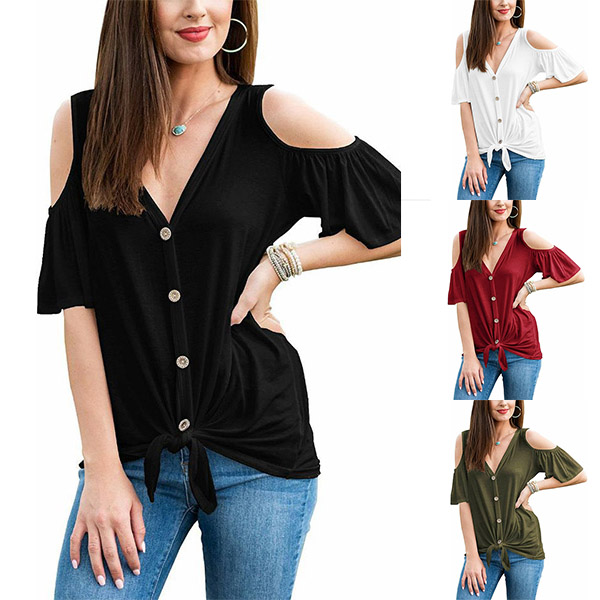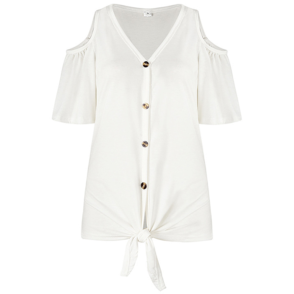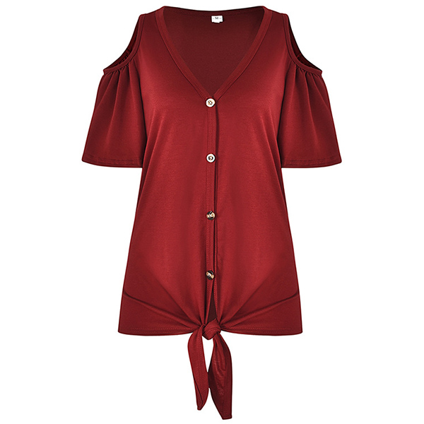 the off-shoulder and v-neck design make this piece look sexy and attractive,while the buttons and knotted
