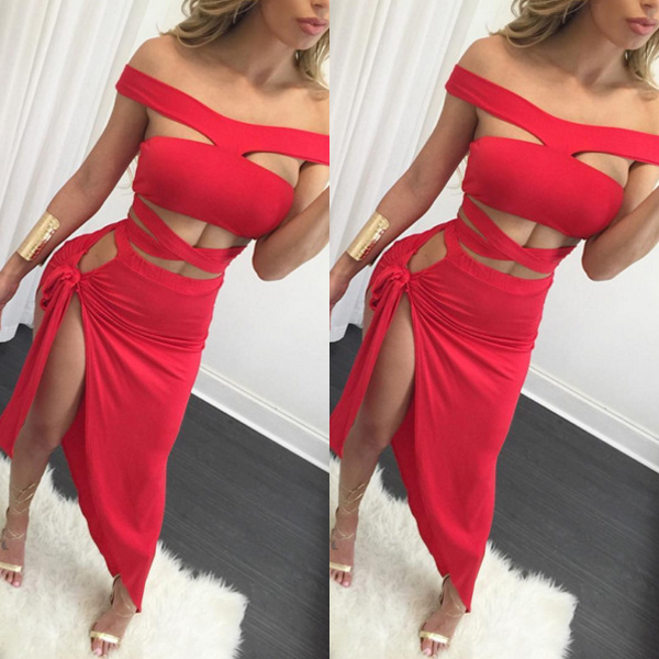 neckline,slit hem and hollow out details make this dress so seductive. I promise all eyes would be focused on you when you