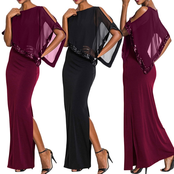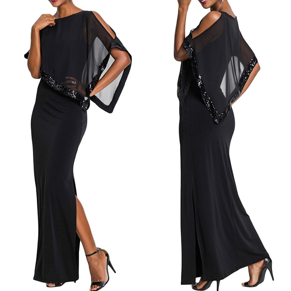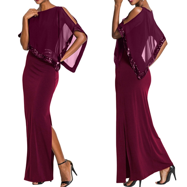 Comes with a solid color,its stunning details like off-shoulder,slit hem and sequin spliced details make this piece